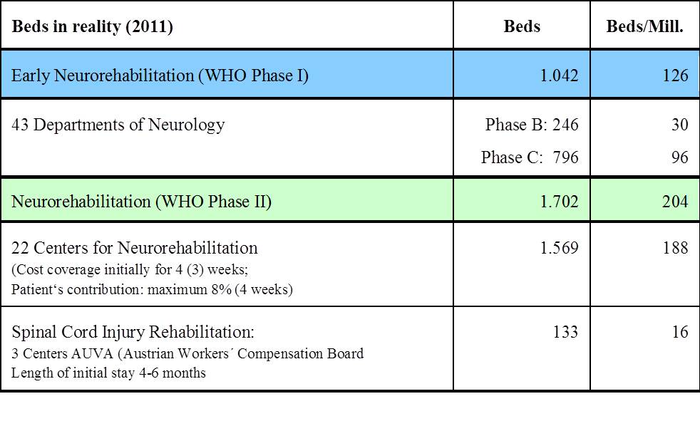 In conclusion, neurorehabilitation in Austria is highly developed. Nevertheless, some further steps need to be undertaken: