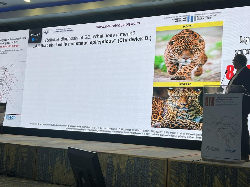 The following lecture, presented by Prof. Dragoslav Sokic (Serbia), addressed the diagnosis and management of acute symptomatic seizures and status epilepticus. His presentation underscored the importance of understanding pharmacological principles in the treatment of these urgent conditions. Through an interactive format, Prof. Sokic engaged participants in discussion and, during the workshop, focused on the recognition and management of nonconvulsive status epilepticus, supported by illustrative video-EEG cases. The session also included a practical exchange on adapting therapeutic strategies to locally available treatment options.