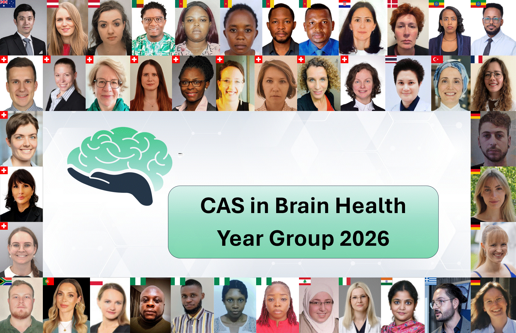 grid of faces of course participants, with the words CAS in Brain Health Year Group 2026