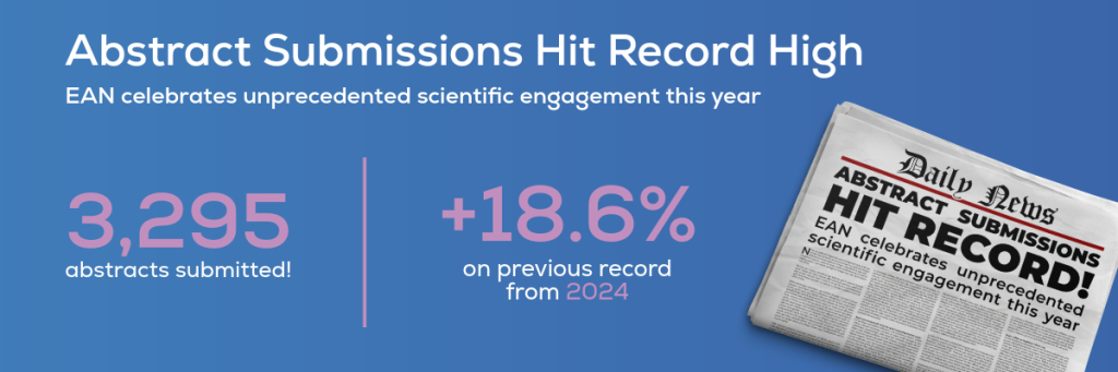 Scientific abstracts are the basis for sessions that form the backbone of our congress. The more we receive, the greater scope we have for putting together high quality sessions. We want to thank all abstract authors for contributing to what will be one of the greatest EAN congresses so far.