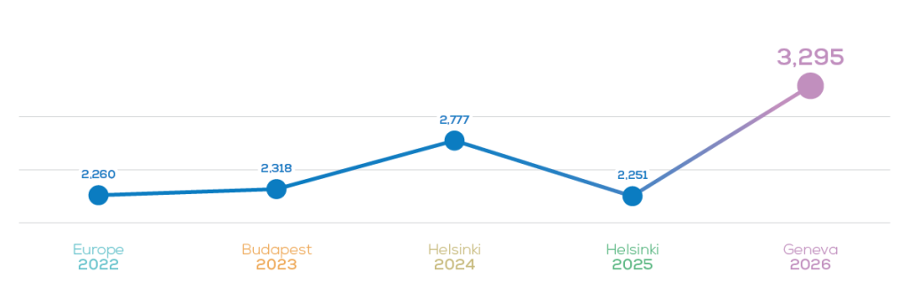 The European Academy of Neurology is delighted to announce a new all-time abstract submission record for its 12th annual congress. By the close of the submission window on 28 January, we received a total of 3,295 abstracts, smashing the previous record set in 2024 with an increase of 18.6%!
